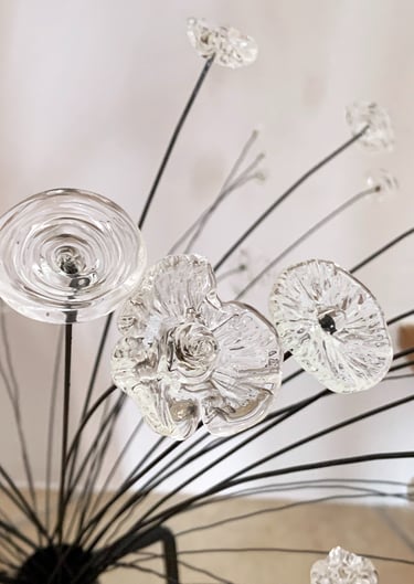 Une composition unique de fleurs en verre de Murano pour célébrer l'arrivée du Printemps et la beauté de la Nature.