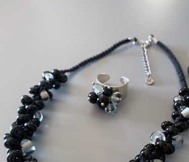 Des bijoux et parures, bouquet décoratif réalisés pour une présentation de mon travail lors des Journées Européennes des Métiers d'Art
